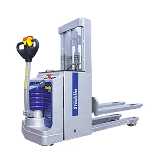 Nuestros montacargas de acero inoxidable están construidos completamente de este material de manera que tienen una vida de servicio extremadamente larga y no se oxidan. Son perfectos para usarse en áreas húmedas o para compañías farmacéuticas. Si así lo desea podemos proporcionarle muchos de nuestros modelos apiladores parcial o completamente en acero inoxidable.