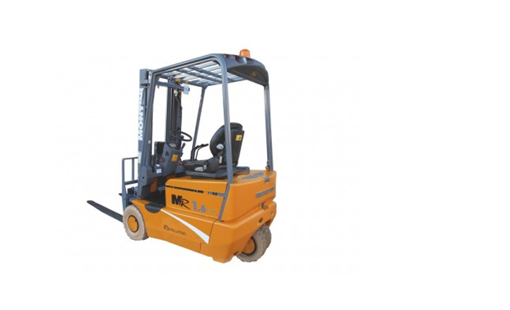 Autoelevador eléctrico de 3 ruedas contrapesado con capacidad de carga de 1600 kg en el centro de carga de 500 mm, con batería de 48 V.