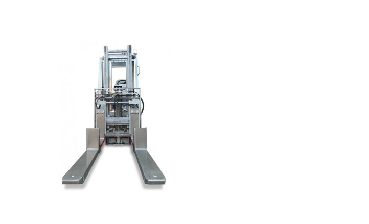 Autoelevador eléctrico de 4 ruedas completamente galvanizada en caliente y con componentes de acero inoxidable, con capacidad de carga de 1750 kg en el centro de carga de 500 mm, equipada con diferencial electrónico y motor de tracción y elevación de doble motor con tecnología electrónica en corriente alterna (CA ) actuando en las ruedas delanteras y en la dirección hidráulica.